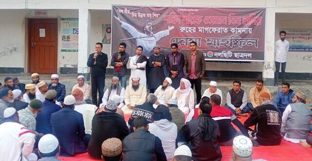 তার আদর্শ ও ত্যাগ দেশের ছাত্রসমাজ ও যুবসমাজকে ন্যায় ও ইনসাফের পথে চলতে অনুপ্রাণিত করবে। দোয়া মাহফিলে স্থানীয় আলেম-ওলামা, গণ্যমান্য ব্যক্তিবর্গ, নলছিটি উপজেলা ছাত্রদলের নেতৃবৃন্দসহ বিভিন্ন শ্রেণি-পেশার মানুষ অংশগ্রহণ করেন।