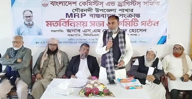 বাংলাদেশ কেমিস্ট এন্ড ড্রাগিস্ট সমিতি গৌরনদী উপজেলা শাখার আয়োজনে কমিটি গঠন ও মতবিনিময় সভা অনুষ্ঠিত হয়েছে।গৌরনদী উপজেলা শাখার সভাপতি আলফা ডায়াগনস্টিক সেন্টার এর পরিচালক এসএম মোশাররফ হোসেন এর সভাপতিত্বে এবি সিদ্দিক জেনারেল হাসপাতাল অ্যান্ড ডক্টর্স চেম্বার আবরার রহমান টাওয়ার ৬ষ্ঠ তলায় মিলনায়তনে এ সভা অনুষ্ঠিত হয়।