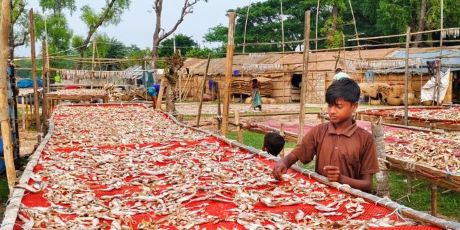 শুঁটকি আঙিনার এক পাশে দাঁড়িয়ে নয় বছরের সুজন ছোট হাতে মাছ পরিষ্কার করছে। বয়স তার স্কুলব্যাগ কাঁধে নেওয়ার, মাঠে খেলাধুলার। কিন্তু বাস্তবতা তাকে শুঁটকির আঙিনায় টেনে এনেছে। বছরে কয়েক মাস স্কুলে গেলেও শীতের পাঁচ মাস পরিবারের সঙ্গে কাজে নামতে হয়। সুজন একা নয়-এমন অসংখ্য শিশু এখানেই বড় হচ্ছে দায়িত্বের ভার কাঁধে নিয়ে।