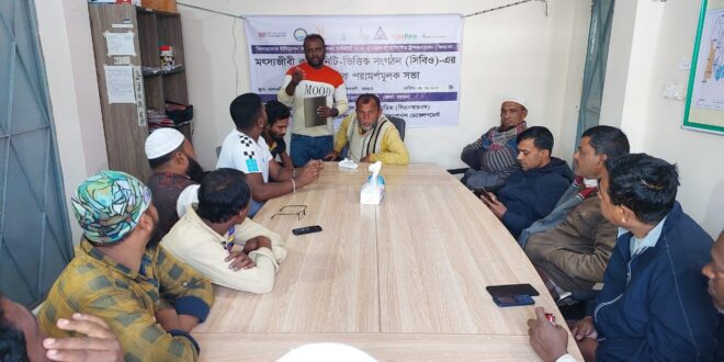 অদ্য ০৮.০১.২০২৬ তারিখ বৃহস্পতি বার তালতলী উপজেলার ফিসনেট প্রকল্প এর মিটিং কক্ষে সেন্টার ফর ন্যাচারাল রিসোর্স স্ট্যাডিজ (সিএনআরএস) এর উদ্দ্যেগে, তালতলীর উপজেলার তালতলী বাজার ক্ষুদ্র মৎস্য ব্যবসায়ী সমিতি এর ত্রৈ-মাসিক পরার্মশ মূলক সভার আয়োজন করা হয়। উক্ত সভায় সভাপতিত্ব করেন তালতলী বাজার ক্ষুদ্র মৎস্য ব্যবসায়ী সমিতি (সিবিও) এর সভাপতি জনাব, মোঃ হারুন তালুকদার। আজকের পরার্মশ মূলক সভা মূল উদ্দেশ্য হলো তালতলী মৎস্য বাজার এর পরিবেশ মান উন্নয়ন করা এর পাশাপাশি অড়ৎদার ও মৎস্যজীবী এর সাথে পারস্পারিক সর্ম্পক উন্নয়ন করতে সক্রিয় ভূমিকা পালন করবে। সভায় ফিসনেট প্রকল্পের পক্ষ থেকে আলোচনা করা হয় যে, তালতলী মাছ বাজারের ফিস ল্যান্ডিং সেন্টারে কি ধরনের উন্নয়ন মূলক কার্যক্রম করা যেতে পারে। তালতলী বাজার ক্ষুদ্র মৎস্য ব্যবসায়ী সমিতির সদস্যরা মিলে আলোচনা করে তাদের প্রয়োজনীয়তা উল্লেখ করেন,