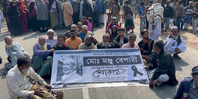 বরিশালের গৌরনদী উপজেলার পূর্ব কাসেমাবাদ এলাকায় ভ্যানচালক মঞ্জু বেপারী (৫০) হত্যাকাণ্ডের ঘটনায় জড়িতদের দ্রুত গ্রেপ্তার ও দৃষ্টান্তমূলক শাস্তির দাবিতে ঢাকা-বরিশাল মহাসড়ক অবরোধ করে বিক্ষোভ ও মানববন্ধন করেছে এলাকাবাসী। মঙ্গলবার (১৩ জানুয়ারি) সকাল ১০ টায় এ কর্মসূচি পালন করা হয়।
