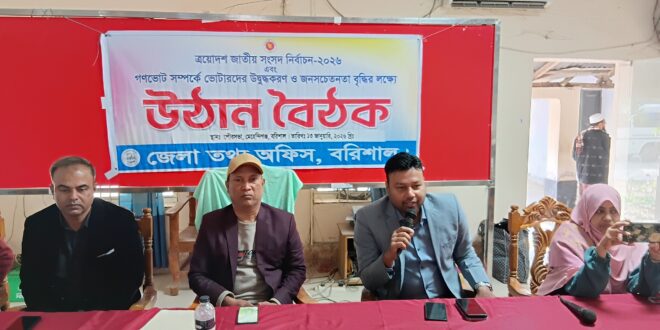 ত্রয়োদশ জাতীয় সংসদ নির্বাচন–২০২৬ ও গণভোট সম্পর্কে ভোটারদের উদ্বুদ্ধকরণ এবং জনসচেতনতা বৃদ্ধির লক্ষ্যে বরিশাল জেলা তথ্য অফিসের উদ্যোগে মেহেন্দীগঞ্জে উঠান বৈঠকসহ নানা কর্মসূচি অনুষ্ঠিত হয়েছে।