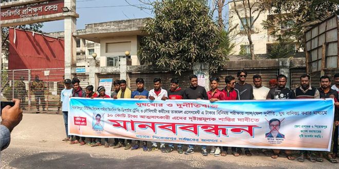মানববন্ধনে আরও অভিযোগ করা হয়, দীর্ঘদিন ধরে এই অনিয়ম ও ঘুষ বাণিজ্যের মাধ্যমে প্রায় ১০ কোটি টাকা আত্মসাৎ করা হয়েছে বলে ধারণা করা হচ্ছে। এ ঘটনায় দ্রুত নিরপেক্ষ তদন্ত কমিটি গঠন করে অভিযুক্তদের দৃষ্টান্তমূলক শাস্তির দাবি জানানো হয়।