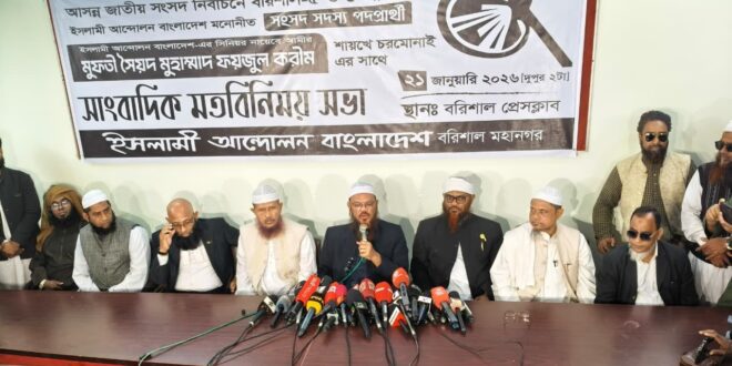 বরিশাল সদর আসনে জামায়াতের প্রার্থী মুয়াযযম হোসাইন হেলাল ইসলাম আন্দোলনকে সমর্থন জানিয়ে প্রার্থিতা প্রত্যাহার করায় তাকে ধন্যবাদ জানান তিনি। সেইসঙ্গে মনে করিয়ে দেন, জামায়াতের আমির ডাক্তার শফিকুর রহমানের প্রতিও সম্মান জানিয়ে ইসলামী আন্দোলন বাংলাদেশ ওই আসনে কোনো প্রার্থী দেননি বলে জানান দলটির সিনিয়র নায়েবে আমির।