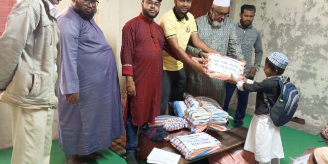 ”এসো দূর করি শীতার্ত মানুষের কষ্টের কালো রাত,তাদের প্রতি রাখি সহানুভূতির আপন হাত” এই স্লোগানকে কেন্দ্র করে বৃহষ্পতিবার ২২শে জানুয়ারি দুপুর ১২ ঘটিকায় নগরীর ২৬ নং ওয়ার্ড হরিনাফুলিয়া আজিজিয়া কারিমিয়া মাদরাসা প্রাঙ্গণে এই কম্বল বিতরণ করে সংগঠনের সদস্যরা।