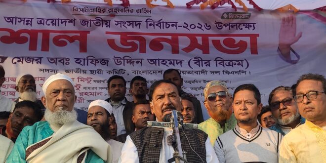 ২২জানুয়ারি শুক্রবার বিকেল ৪টায় তজুমদ্দিন উপজেলার সোনাপুর আনন্দ বাজার এলাকায় ত্রয়োদশ জাতীয় সংসদ নির্বাচনের নির্বাচনী জনসভায় এসব কথা বলেন তিনি।