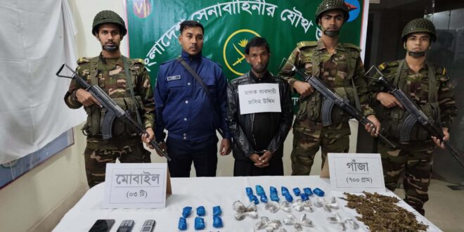 সেনাবাহিনী সূত্র জানায়, গোপন গোয়েন্দা তথ্যের ভিত্তিতে ক্যাপ্টেন সাদির নেতৃত্বে একটি বি-টাইপ প্যাট্রোল দল মহিপুর এলাকার পরিচিত মাদক ব্যবসায়ী জসিম উদ্দিনকে গ্রেপ্তারের লক্ষ্যে অভিযান শুরু করে। অভিযানের একপর্যায়ে তাকে আটক করা হয়। পরবর্তীতে তার বসতবাড়িতে তল্লাশি চালিয়ে ৭০০ গ্রাম গাঁজা ও তিনটি মোবাইল ফোন উদ্ধার করা হয়। উদ্ধারকৃত গাঁজার আনুমানিক বাজার মূল্য প্রায় ৪৫ হাজার টাকা।