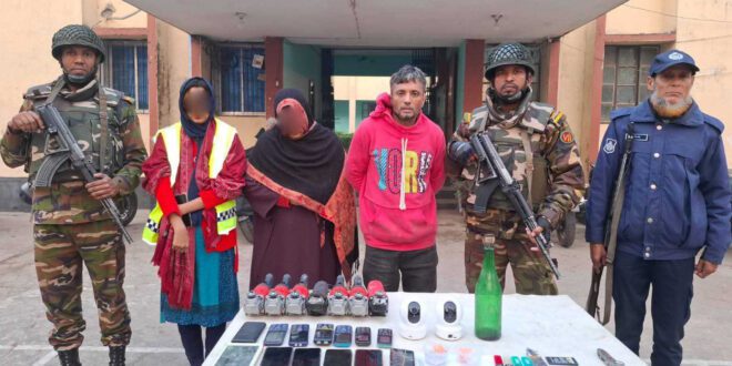পিরোজপুর প্রতিনিধি : পিরোজপুরের নেছারাবাদে বিশেষ অভিযান চালিয়ে স্বামী ও স্ত্রীকে গ্রেফতার করেছে যৌথ বাহিনী। এ সময় তাদের কাছ থেকে বিপুল পরিমাণ মাদক ও দেশীয় অস্ত্র উদ্ধার করা হয়। বুধবার (২৮ জানুয়ারি) রাত ৩টার দিকে নেছারাবাদ উপজেলার নিজ বাসায় আকস্মিকভাবে এ অভিযান পরিচালনা করা হয়।