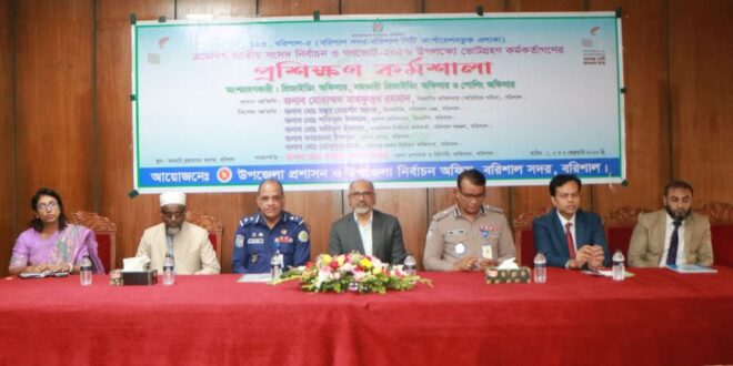 নিজস্ব প্রতিবেদক : ত্রয়োদশ জাতীয় সংসদ নির্বাচন ও গণভোট–সুষ্ঠু, অবাধ ও নিরপেক্ষভাবে আয়োজনের লক্ষ্যে বরিশালে ভোটগ্রহণ কর্মকর্তাদের প্রশিক্ষণ কর্মশালা অনুষ্ঠিত হয়েছে।