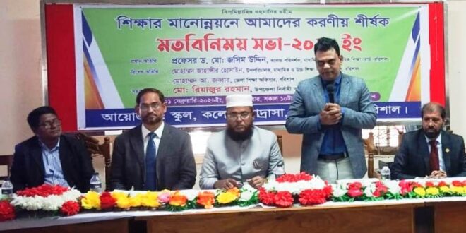 এইচ এম আনিছুর রহমান, মেহেন্দিগঞ্জ : মেহেন্দিগঞ্জে স্কুল,কলেজ ও মাদ্রাসা শিক্ষকদের আয়োজনে “শিক্ষার মানোন্নয়নে আমাদের করণীয় শীর্ষক”- এক মতবিনিময় সভা অনুষ্ঠিত হয়েছে। রবিবার (১ ফেব্রুয়ারী) সকাল ১১ টায় উপজেলা পরিষদ হল রুমে উপজেলা নির্বাহী কর্মকর্তা মোঃ রিয়াজুর রহমানের সভাপতিত্বে অনুষ্ঠিত এই মতবিনিময় সভায় প্রধান অতিথি হিসাবে উপস্থিত ছিলেন, বরিশাল মাধ্যমিক ও উচ্চ মাধ্যমিক শিক্ষাবোর্ডের কলেজ পরিদর্শক প্রফেসর ড. মোঃ জসিম উদ্দিন।