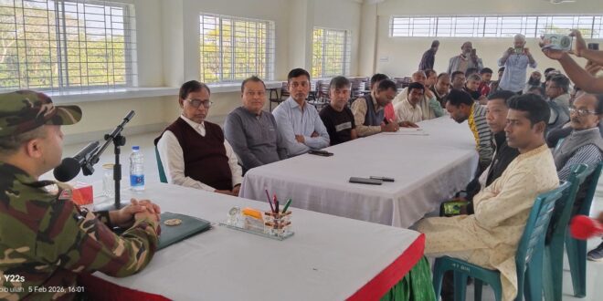 সেনা কর্মকর্তা বলেন, নির্বাচন-পূর্ব ও নির্বাচন চলাকালীন সময়ে যদি কোনো ধরনের আইনশৃঙ্খলা পরিস্থিতির অবনতি ঘটে, তাহলে তাৎক্ষণিকভাবে সেনাবাহিনীকে অবহিত করার জন্য অনুরোধ জানানো হচ্ছে। তিনি আরও বলেন, যেকোনো আপদকালীন পরিস্থিতিতে বাংলাদেশ সেনাবাহিনী জনগণের পাশে থাকবে এবং প্রয়োজনীয় সব ব্যবস্থা গ্রহণ করবে।