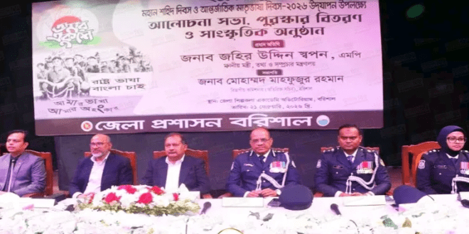 বরিশালে যথাযোগ্য মর্যাদায় মহান শহীদ দিবস ও আন্তর্জাতিক মাতৃভাষা দিবস পালিত হয়েছে। দিবসটি উপলক্ষে নগরীর কেন্দ্রীয় শহীদ মিনারে একুশের প্রথম প্রহরে শ্রদ্ধা নিবেদন করতে ভিড় করেন নানান শ্রেণি পেশার মানুষ। রাত সাড়ে ১১টার মধ্যে পুরো শহীদ মিনার এলাকায় শ্রদ্ধা জানাতে আসেন বিভিন্ন সংগঠনসহ সাধারণ মানুষ। রাত ১২টা ১মিনিটে প্রথমেই শহীদ বেদীতে ফুলের শ্রদ্ধা নিবেদন করেন বরিশালের বিভাগীয় কমিশনার মোহাম্মদ মাহফুজুর রহমান। এর পর পরই শ্রদ্ধা নিবেদন করেন বরিশাল রেঞ্জ ডিআইজি মো. মঞ্জুর মোর্শেদ আলম, পুলিশ কমিশনার মো. শফিকুল ইসলাম ও জেলা প্রশাসক মো. খায়রুল আলম সুমন। এরপরে বিভিন্ন সরকারি-বেসরকারি প্রতিষ্ঠান এবং রাজনৈতিক-সামাজিক সংগঠনের পক্ষ থেকে শ্রদ্ধা নিবেদন করা হয়। এছাড়া শ্রদ্ধা নিবেদন করেছেন বরিশাল-৬ আসনের এমপি আবুল হোসেন খান। দিবসটি উপলক্ষে শহীদ মিনারে শ্রদ্ধা জানান, বরিশাল জেলা দক্ষিণ বিএনপির আহবায়ক আবুল হোসেন খান, সদস্য সচিব এ্যাড. আবুল কালাম শাহিন, বরিশাল মহানগর বিএনপির আহবায়ক মনিরুজ্জামান খান ফারুক, সদস্য সচিব জিয়া উদ্দিন শিকদার জিয়াসহ বিএনপির অঙ্গ ও সহযোগী সংগঠনের নেতৃবৃন্দ। এসময় শ্রদ্ধা নিবেদন করতে আসা আগতরা জানান, ‘৭১-এর মুক্তিযুদ্ধকে লালন করে সকলে মিলে নতুন একটি বাংলাদেশ গড়তে ঐক্যবদ্ধ ভাবে কাজ করতে হবে। এতে আগামীর বাংলাদেশ একটি সুন্দর বাংলাদেশ হিসেবে প্রতিষ্ঠিত হবে এমন প্রত্যাশা সবার।