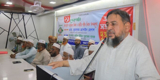 আন্তর্জাতিক মাতৃভাষা দিবস উপলক্ষে বাংলাদেশ জামায়াতে ইসলামী বরিশাল মহানগরীর উদ্যোগে আলোচনা সভা ও দোয়া মাহফিল অনুষ্ঠিত হয়েছে। শুক্রবার (২১ ফেব্রুয়ারি) নগরীর গির্জা মহল্লাস্থ আসমত আলী খান ইন্সটিটিউট (একে স্কুল) অডিটোরিয়ামে আয়োজিত সভায় প্রধান অতিথি হিসেবে বক্তব্য রাখেন দলের সহকারী সেক্রেটারি জেনারেল অ্যাডভোকেট মুয়াযয্ম হোসাইন হেলাল। তিনি বলেন, দেশে কোনো ফ্যাসিবাদী শক্তির উত্থান হলে বাংলাদেশের জনগণ ২১শে ফেব্রুয়ারির মতো আবারও বুক পেতে রুখে দাঁড়াবে। তিনি দাবি করেন, ১৯৫২, ১৯৬৯, ১৯৭০, ১৯৭১, ১৯৯০ ও ২০২৪ সালের জুলাইয়ের অভ্যুত্থানে জীবনদানের মাধ্যমে জনগণ প্রমাণ করেছে—এ দেশে ফ্যাসিবাদের কোনো স্থান নেই। “দেশকে আবার ফ্যাসিবাদের দিকে নেওয়ার চিন্তা থাকলে দেয়ালের লিখন পড়তে হবে,” বলেন তিনি। অ্যাডভোকেট হেলাল আরও বলেন, ভাষার জন্য জীবন দিলেও এখনো সব ক্ষেত্রে বাংলা ভাষার কার্যকর ব্যবহার নিশ্চিত হয়নি। উচ্চশিক্ষা ও আদালতসহ বিভিন্ন ক্ষেত্রে বিদেশি ভাষার প্রাধান্য জাতি হিসেবে হতাশাজনক বলে মন্তব্য করেন তিনি। তবে আন্তর্জাতিক যোগাযোগের স্বার্থে অন্যান্য ভাষায় দক্ষতা অর্জনের পাশাপাশি রাষ্ট্রীয় ও প্রাতিষ্ঠানিক কাজে বাংলা ভাষাকে অগ্রাধিকার দেওয়ার আহ্বান জানান। তিনি জুলাইয়ের আন্দোলনের প্রসঙ্গ টেনে বলেন, ফ্যাসিবাদের বিরুদ্ধে অবস্থান নিয়ে বহু মানুষ প্রাণ ও অঙ্গহানি স্বীকার করেছে। এত ত্যাগের বিনিময়ে প্রণীত সনদ অস্বীকারের চেষ্টা হলে জনগণ তা মেনে নেবে না বলেও মন্তব্য করেন তিনি। জনগণ ভোটাধিকারসহ সব অধিকার আদায়ে ঐক্যবদ্ধ থাকবে বলে জানান। বরিশাল মহানগরীর আমির মাওলানা জহির উদ্দিন মু. বাবরের সভাপতিত্বে এবং মহানগর সেক্রেটারি মাওলানা মতিউর রহমানের সঞ্চালনায় অনুষ্ঠানে আরও বক্তব্য রাখেন মহানগরীর সহকারী সেক্রেটারি তারিকুল ইসলাম, কর্মপরিষদ সদস্য মাওলানা জয়নুল আবেদীন, শামীম কবির, মহফুজুর রহমান আমিন, কাউনিয়া থানা আমির মাওলানা মোস্তাফিজুর রহমান, পেশাজীবী বিভাগের সভাপতি সুলতানুল আরেফিন, আইনজীবী বিভাগের সভাপতি অ্যাডভোকেট আবুল খায়ের শহীদ, ব্যবসায়ী বিভাগের সভাপতি মোয়াজ্জেম হোসেন হাওলাদার ও ব্যাংকার্স বিভাগের সভাপতি মুজিবুর রহমানসহ অন্যান্য নেতৃবৃন্দ। আলোচনা শেষে ভাষা শহীদদের রুহের মাগফিরাত কামনায় বিশেষ দোয়া ও মোনাজাত করা হয়।