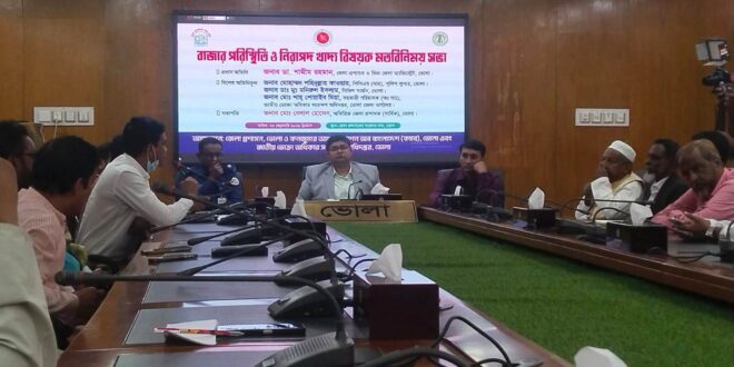 ভোলা প্রতিনিধি : ভোলা জেলায় বাজার পরিস্থিতি স্থিতিশীল রাখা ও নিরাপদ খাদ্য নিশ্চিতকরণে এক মতবিনিময় সভা অনুষ্ঠিত হয়েছে। সোমবার (২৩ ফেব্রুয়ারি) সকাল ১১টায় জেলা প্রশাসকের সম্মেলন কক্ষে এ সভার আয়োজন করা হয়।