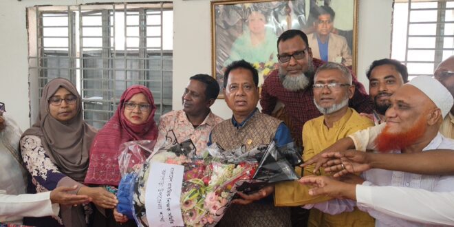 বিশ্বাস শিহাব পারভেজ মিঠু, কলাপাড়া : পটুয়াখালী-৪ ( কলাপাড়া-রাঙ্গাবালী) নবনির্বাচিত সাংসদ আলহাজ্ব এবিএম মোশাররফ হোসেনকে ফুলেল শুভেচ্ছা ও অভিনন্দন জানিয়েছেন বাংলাদেশ প্রাথমিক শিক্ষক সমিতি, কলাপাড়া উপজেলা শাখার নেতৃবৃন্দ। বুধবার দুপুরে এমপি মহোদয়ের বাসভবনে আয়োজিত এক সৌজন্য সাক্ষাৎ ও শুভেচ্ছা বিনিময় হয়।