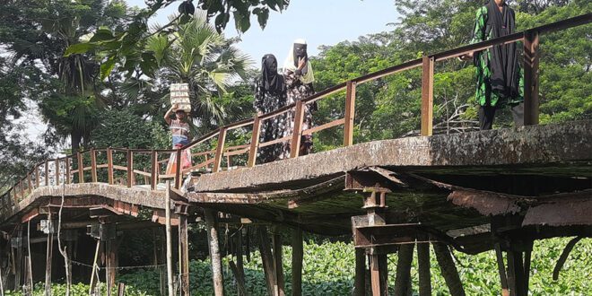 বরগুনার তালতলী উপজেলার বিভিন্ন শিক্ষাপ্রতিষ্ঠানসংলগ্ন একাধিক সেতু দীর্ঘদিন ধরে ঝুঁকিপূর্ণ অবস্থায় রয়েছে। কোথাও সেতুর পাটাতন ভেঙে খালে পড়ে গেছে, কোথাও আবার মাঝখান দেবে গেছে। এতে প্রতিদিন শত শত শিক্ষার্থী ও সাধারণ মানুষ জীবনের ঝুঁকি নিয়ে এসব সেতু পারাপার করছেন। স্থানীয়দের সঙ্গে কথা বলে জানা যায়, ভেঙে পড়া কিছু সেতুর স্থানে এলাকাবাসী অস্থায়ীভাবে কাঠ ও বাঁশ দিয়ে বিকল্প পারাপারের ব্যবস্থা করেছেন। তবে সেগুলোও অত্যন্ত নাজুক হওয়ায় যেকোনো সময় বড় দুর্ঘটনার আশঙ্কা রয়েছে। সম্প্রতি পশ্চিম ঝাড়াখালি মডেল মাধ্যমিক বিদ্যালয়সংলগ্ন একটি সেতু শিক্ষার্থীদের পারাপারের সময় ভেঙে পড়ে। এতে কয়েকজন শিক্ষার্থী আহত হয়। এরপরও এখনো টেকসই কোনো উদ্যোগ নেওয়া হয়নি বলে অভিযোগ এলাকাবাসীর। শুক্রবার (২৭ ফেব্রুয়ারি) সকালে সরেজমিনে দেখা গেছে, গেন্ডামারা–সোনারপুল সেতু, বেহালা মাধ্যমিক বিদ্যালয়সংলগ্ন সেতু, পশ্চিম ঝাড়াখালি মডেল মাধ্যমিক বিদ্যালয়সংলগ্ন সেতু এবং হুলাটানা সেতু বর্তমানে অত্যন্ত ঝুঁকিপূর্ণ অবস্থায় রয়েছে। এছাড়া শানুর বাজারসংলগ্ন বেহালা খালের ওপর সেতু ও তালতলী মাছ বাজারসংলগ্ন সেতু কয়েক বছর আগে ভেঙে খালে পড়ে আছে। বিশেষ করে সোনারপুল সেতুটি দুই পাড়ের একাধিক শিক্ষাপ্রতিষ্ঠানের শিক্ষার্থীদের জন্য গুরুত্বপূর্ণ। সেতুর পূর্ব পাশে গেন্ডামারা বালিকা দাখিল মাদরাসা ও একটি প্রাথমিক বিদ্যালয় এবং পশ্চিম পাশে উত্তর গেন্ডামারা উম্মুল ক্বোরা মাধ্যমিক বিদ্যালয়, উম্মুল ক্বোরা কলেজ ও একটি ইবতেদায়ি মাদরাসা অবস্থিত। প্রতিদিন অন্তত পাঁচটি শিক্ষাপ্রতিষ্ঠানের প্রায় ৫০০ শিক্ষার্থী এ সেতু ব্যবহার করে যাতায়াত করে। পাশাপাশি স্থানীয় বাসিন্দাদের উপজেলা শহর ও বাজারে যাতায়াতের জন্যও এসব সেতুর ওপর নির্ভর করতে হয়। পশ্চিম ঝাড়াখালি মডেল মাধ্যমিক বিদ্যালয়সংলগ্ন সেতুটি ভেঙে পড়ায় বর্তমানে শিক্ষার্থী ও এলাকাবাসী (খেয়া) নৌকায় পারাপার করছেন। অন্যদিকে তালতলী সদর মাছ বাজারসংলগ্ন সেতু ভেঙে পড়ায় পশ্চিম পাড়ের বাসিন্দারা চরম ভোগান্তিতে পড়েছেন। ওই এলাকায় অবস্থিত একটি নূরানী ও হাফেজি মাদরাসার দুই শতাধিক শিক্ষার্থী প্রতিদিন ঝুঁকি নিয়ে বিকল্প পথে যাতায়াত করছে। অভিভাবক ও এলাকাবাসী জানান, দ্রুত ব্যবস্থা না নিলে যেকোনো সময় বড় ধরনের দুর্ঘটনা ঘটতে পারে। তারা দ্রুত এসব সেতু সংস্কার বা নতুন করে নির্মাণের দাবি জানান। এ বিষয়ে স্থানীয় সরকার প্রকৌশল অধিদপ্তর (এলজিইডি) তালতলী উপজেলা প্রকৌশলী মো. সাখাওয়াত হোসেন বলেন, তালতলী মাছ বাজার, শানুর বাজার ও হুলাটানা সেতুর প্রস্তাব পাঠানো হয়েছে। তবে অন্যান্য সেতুর রাস্তার আইডি না থাকায়