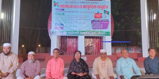 ২৫ মার্চ বুধবার রাতে বরিশাল কেন্দ্রীয় শহীদ মিনারে মহান স্বাধীনতা ও জাতীয় দিবস উপলক্ষে বাংলাদেশী সাংস্কৃতিক জোট আয়োজিত দু’দিনব্যাপী আলোচনা সভা ও সাংস্কৃতিক অনুষ্ঠানের প্রথম দিনে প্রধান অতিথির বক্তব্যে এসব কথা বলেন।