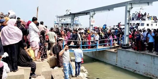 তবে ঘাটে পর্যাপ্ত নৌযান না থাকায় তারা চার থেকে পাঁচ ঘণ্টা অপেক্ষা করেও রওনা দিতে পারছেন না। কর্মস্থলে ফেরা মানুষের চাপে পন্টুনেও দাঁড়ানোর যায়গা নেই। নৌযান সংকটে ঘণ্টার পর ঘণ্টা অপেক্ষা করে বাধ্য হয়েই জীবনের ঝুঁকি নিয়ে অবৈধ ছোট ছোট নৌযান ও স্পিডবোটে বাড়তি ভাড়া দিয়ে উত্তাল মেঘনা পাড়ি দিচ্ছেন অনেকেই।