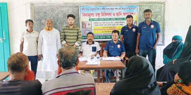 লালমোহন প্রতিনিধি : ভোলার লালমোহন উপজেলায় বিনামূল্যে চক্ষু চিকিৎসাসেবা ও ছানি অপারেশন ক্যাম্প অনুষ্ঠিত হয়েছে। শনিবার সকাল ৯টা থেকে দুপুর ২টা পর্যন্ত উপজেলার পশ্চিম চরউমেদ ইউনিয়নের গজারিয়া মাধ্যমিক বিদ্যালয় প্রাঙ্গণে এ ক্যাম্প অনুষ্ঠিত হয়।
