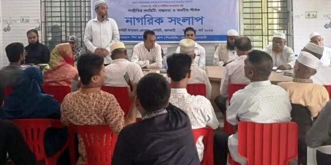 এনামুল হক শিকদার, নলছিটি : ঝালকাঠির নলছিটিতে “সংঘাত নয়, শান্তি ও সম্প্রীতির বাংলাদেশ গড়ি” শ্লোগানকে সামনে রেখে “সম্প্রীতির নলছিটি: বাস্তবতা ও করণীয়” শীর্ষক এক নাগরিক সংলাপ অনুষ্ঠিত হয়েছে।