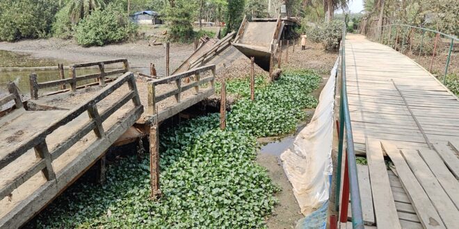 বিশ্বাস শিহাব পারভেজ মিঠু, কলাপাড়া : পর্যটন সৈকত কুয়াকাটার বড়হরপাড়া খালের উপর নির্মিত একটি আয়রণ সেতু ভেঙে পড়ার পর চরম ভোগান্তিতে পড়েছেন এলাকাবাসী ও পর্যটকরা। অস্থায়ীভাবে নির্মিত কাঠের তৈরি সেতুটিও এখন ঝুঁকিপূর্ণ হয়ে উঠেছে। যেকোন মূহূর্তে ঘটতে পারে বড় ধরণের আরেকটি দুর্ঘটনা। দীর্ঘদিনের এই দুর্ভোগ থেকে মুক্তি পেতে দ্রুত কার্যকর পদক্ষেপের অপেক্ষায় এলাকাবাসী।