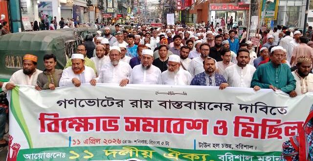 সমাবেশে বিশেষ অতিথির বক্তব্য রাখেন বরিশাল জেলা জামায়াতের আমির অধ্যক্ষ আবদুল জব্বার, লেবারপার্টি মহানগর সভাপতি এসএম সোহেল মাহমুদ, এবি পার্টি মহানগর সমন্বয়ক জিএম রাব্বি, এনসিপি বরিশাল জেলা আহবায়ক আবু সাঈদ মুসা, এনসিপি কেন্দ্রীয় নির্বাহী সদস্য রফিকুল ইসলাম কনক সহ ১১দলীয় জেলা ও মহানগর নেতৃবৃন্দ। সমাবেশে সভাপতিত্ব করেন মহানগর জামায়াতের নায়েবে আমির প্রফেসর মাহমুদ হোসাইন দুলাল। অনুষ্ঠান সঞ্চালনা করেন মহানগর মজলিসে শুরার সদস্য আনোয়ার হোসাইন। সমাবেশ শেষে বিশাল এক বিক্ষোভ মিছিল টাউনহল থেকে শুরু হয়ে নগরীর প্রধান প্রধান সড়ক প্রদক্ষিণ করে।