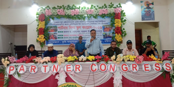 বরিশালের বানারীপাড়া উপজেলা পরিষদ অডিটোরিয়ামে পার্টনার ফিল্ড স্কুল কংগ্রেস -২০২৬ অনুষ্ঠিত হয়েছে।১২ এপ্রিল (রবিবার) সকাল ১১.৩০ ঘটিকায় প্রোগ্রাম অন এগ্রিকালচারাল এ্যান্ড রুরাল ট্রান্সফরমেশন ফর নিউট্রিশন এন্টারপ্রেনরশিপ অ্যান্ড রেসিলিয়েন্স ইন বাংলাদেশ (পার্টনার) এর আওতায় উক্ত পার্টনার ফিল্ড স্কুল কংগ্রেসের সভাটি অনুষ্ঠিত হয়।বানারীপাড়া উপজেলা নির্বাহী কর্মকর্তা মোঃ বায়েজিদুর রহমানের সভাপতিত্বে প্রধান অতিথি হিসেবে উপস্থিত ছিলেন বরিশাল অঞ্চলের অতিরিক্ত কৃষি সম্প্রসারন অদিদপ্তরের অতিরিক্ত পরিচালক জনাব ড.মোহাম্মদ নজরুল ইসলাম সিকদার।এছাড়া বিশেষ অতিথি হিসেবে উপস্থিত থেকে বক্তব্য রাখেন বরিশাল খামারবাড়ি কৃষি সম্প্রসারন অদিদপ্তরের উপ-পরিচালক মোসাম্মৎ মরিয়ম,বানারীপাড়া উপজেলা সহকারি কমিশনার (ভূমি) জি এম এ মুনীব,বানারীপাড়া উপজেলা কৃষি কর্মকর্তা মোঃ মাহফুজুর রহমান,উপজেলা প্রানী সম্পদ কর্মকর্তা সাইফুল ইসলাম,উপজেলা সমাজসেবা কর্মকর্তা পার্থ সারথি, উপজেলা প্রেসক্লাবের সাধারন সম্পাদক মোঃ জাকির হোসেন,পৌর প্রেসক্লাবের সভাপতি ইলিয়াস শেখ।উপজেলা কৃষি সম্প্রসারন কর্মকর্তা তনয় সিং এর সঞ্চালনায় অন্যান্যদের মধ্যে উপস্থিত ছিলেন উপজেলা আইসিটি কর্মকর্তা হাফিজ আল আসাদ,উপজেলা প্রকল্প কর্মকর্তা মলয় সাহা, বানারীপাড়া উপজেলা বিএনপির সিনিয়র যুগ্ম সাধারণ সম্পাদক আঃ সবুর খান, পৌর বিএনপির সিনিয়র সহ-সভাপতি মোঃ আঃ সালাম,উপজেলা প্রেসক্লাবের সিনিয়র যুগ্ম সাধারণ সম্পাদক মাইদুল ইসলাম শফিক, সদস্য মাসুদ হাওলাদার, পৌর প্রেসক্লাবের সাংগাঠনিক সম্পাদক নুরুজ্জামান পলাশ প্রমূখ। এ সময় বক্তরা উচ্চ ফসনশীল ফসল উৎপাদন,রাসায়নিক কেমিক্যাল মুক্ত নিরাপদ ও পুষ্টিকর খাদ্য উৎপাদন নিশ্চিতকরন,কৃষকদের স্মার্ট কার্ড বিতরনের নিশ্চয়তা প্রদান ও এর কার্যকারিতা নিরূপণ,উদ্যান ফসল উৎপাদন, উন্নতমানের ধান,গম,ডাল,আলুসহ বিভিন্ন পুষ্টিকর খাদ্য উৎপাদন,উন্নত সেচ প্রকল্প নিশ্চিতকরন,নারী কৃষকদের কৃষিতে উদ্ভুদ্ধকরন,কৃষকদের উৎপাদিত ফসলের মানসম্মত বাজার ব্যবস্থা নিশ্চিতকরণ, কৃষকদের পুষ্টিকর খাদ্য গ্রহন নিশ্চিতকরণসহ বিভিন্ন বিষয়ে গুরুত্বপূর্ণ আলোচনা করেন।
