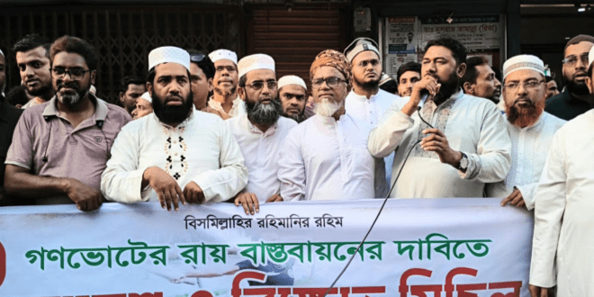 বক্তারা বলেন- গণভোটের রায় বাস্তবায়নের দাবি কোনো রাজনৈতিক স্বার্থে নয়, বরং গণমানুষের অধিকার প্রতিষ্ঠার জন্য। তারা অভিযোগ করেন, সরকার এই দাবিকে উপেক্ষা করে সময়ক্ষেপণ করছে। দ্রুত দাবি মেনে নেওয়া না হলে কঠোর কর্মসূচি ঘোষণা করা হবে বলেও হুঁশিয়ারি দেন তারা।