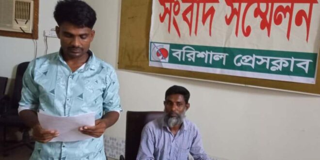নিজস্ব প্রতিবেদক : ভোলার চরফ্যাশনে তরমুজ চাষকে কেন্দ্র করে এক কৃষক পরিবারের ওপর চাঁদাবাজি, সশস্ত্র হামলা, মিথ্যা মামলা ও প্রাণনাশের হুমকির গুরুতর অভিযোগ উঠেছে। এসব ঘটনার প্রতিবাদ ও ন্যায়বিচারের দাবিতে বরিশাল প্রেসক্লাবে সংবাদ সম্মেলন করেছেন ভুক্তভোগী মোহাম্মদ জাফর প্যাদা। বুধবার (২২ এপ্রিল) সকালে আয়োজিত সংবাদ সম্মেলনে তিনি লিখিত বক্তব্যে তার পরিবারের ওপর সংঘটিত ধারাবাহিক সহিংসতার বিস্তারিত তুলে ধরেন।