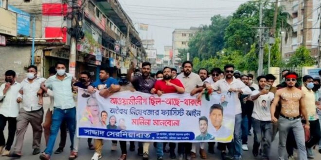 বরিশাল মহানগর যুবলীগের যুব সংগঠক ও নিষিদ্ধ ছাত্রলীগের বরিশাল জেলা সহসভাপতি সাজ্জাদ সেরনিয়াবাতের অনুসারীরা এই মিছিল করেন। এ সময় তারা আওয়ামী লীগের কার্যক্রমের ওপর নিষেধাজ্ঞা প্রত্যাহার এবং পুলিশ হত্যার বিচার দাবি জানান।