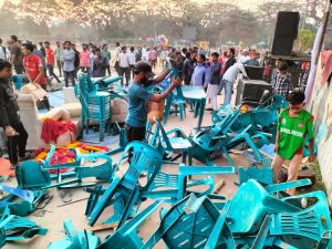 ট্রফি নিয়ে খেলোয়াড়রা মঞ্চ ত্যাগ করার সাথে সাথে ক্ষেপে যায় উপস্থিত জনতা। শুরু হয় মঞ্চ লক্ষ করে বৃষ্টির মতো জুতো ও চেয়ার নিক্ষেপ। মুহুর্তেই পন্ড হয়ে যায় পুরো আয়োজন। দুর্বল নিরাপত্তা ব্যবস্থা আর কর্তৃপক্ষের অব্যবস্থাপনার কারনে এই অবস্থার সৃষ্টি হয় বলে অভিযোগ ছিল সকলের। একইসাথে সুন্দর একটি আয়োজন পন্ড হয়ে যাওয়ার আক্ষেপও ছিল তাদের মধ্যে। অবশ্য এসব বিষয়ে কথা বলতে রাজি হয়নি আয়োজক কিংবা প্রশাসনের কেউ। এর আগে দুপুরে বরিশাল বিমান বন্দরে ট্রফি নিয়ে পৌঁছানোর পর বরিশালে ক্রিকেটের উন্নয়নে অনেক কিছু করার কথা বলেন ফরচুন বরিশালের মালিক মিজানুর রহমান। এখানে শিশুদের জন্য ক্রিকেট একাডেমি করার কথাও বলেন তিনি।