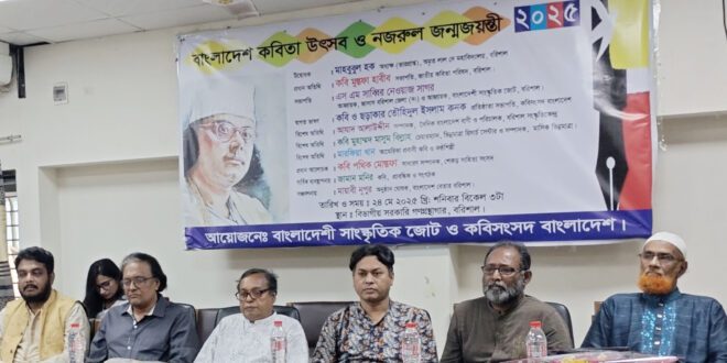 বাংলাদেশী সাংস্কৃতিক জোট ও কবিসংসদ বাংলাদেশের যৌথ উদ্যোগে অনুষ্ঠিত হয়েছে কবিতা উৎসব এবং কাজী নজরুল ইসলামের ১২৬তম জন্ম জয়ন্তী। ২৪ মে শনিবার বিকেলে বরিশাল বিভাগীয় সরকারি গণগ্রন্থাগারে এই অনুষ্ঠানের আয়োজন করা হয়।