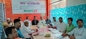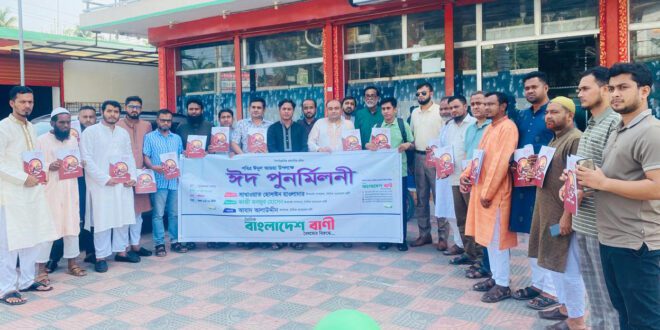 বরিশাল বিভাগের সর্বাধিক প্রচারিত দৈনিক বাংলাদেশ বাণী পত্রিকার ভোলা জেলার বিভিন্ন উপজেলায় কর্মরত সংবাদকর্মী, রাজনৈতিক ও সামাজিক নেতৃবৃন্দকে নিয়ে ঈদ পুনর্মিলনী অনুষ্ঠিত হয়েছে। রবিবার ( ৮ জুন ২০২৫) সকাল ১১টায় দৈনিক বাংলাদেশ বাণী সম্পাদক আযাদ আলাউদ্দীন এর সভাপতিত্বে কুঞ্জেরহাট বাজারে গোল্ডেন চাইনিজ রেষ্টুরেন্টে এ পুনর্মিলনী অনুষ্ঠিত হয়। ঈদ পুনর্মিলনী অনুষ্ঠানে প্রধান অতিথি হিসেবে উপস্থিত ছিলেন, দৈনিক বাংলাদেশ বাণীর উপদেষ্টা সম্পাদক সাখাওয়াত হোসাইন হাওলাদার।