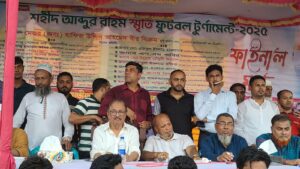 ভোলায় শহীদ আব্দুর রহিম স্মৃতি ফুটবল টুর্ণামেন্টে লালমোহন উপজেলা একাদশকে ১-০ গোলে হারিয়ে চ্যাম্পিয়ন হয়েছেন তজুমদ্দিন উপজেলা একাদশ।
