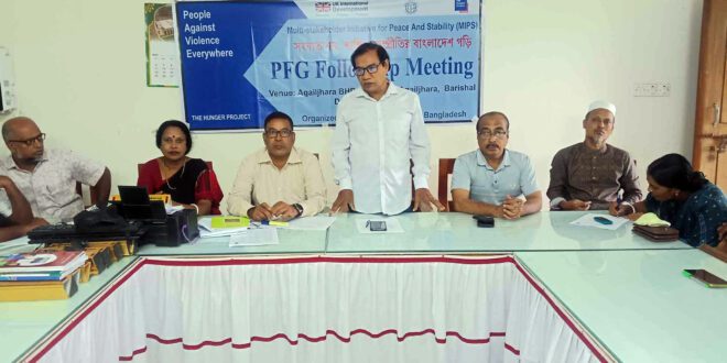 আগৈলঝাড়া (বরিশাল) প্রতিনিধিঃ “সংঘাত নয়, শান্তি ও সম্প্রীতির বাংলাদেশ গড়ি” এ বিষয়কে সামনে রেখে বরিশালের আগৈলঝাড়ায় দি হাঙ্গার প্রজেক্টের আয়োজনে পিস ফ্যাসিলিটেটর গ্রুপ (পিএফজি) এর সদস্যদের নিয়ে ফলোআপ মিটিং