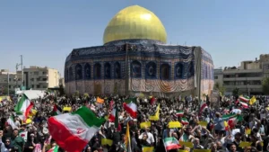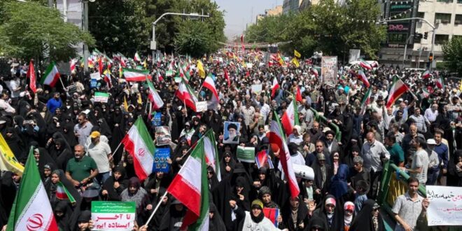 জুমার নামাজের পর ইরানের রাজধানী তেহরানে লাখো মানুষ ইসরাইলের বিরুদ্ধে বিক্ষোভ করেছেন। রাষ্ট্রীয় টেলিভিশনে প্রচারিত ছবিতে দেখা গেছে, তারা তাদের নেতাদের প্রতি সমর্থন জানিয়ে স্লোগান দিচ্ছেন।