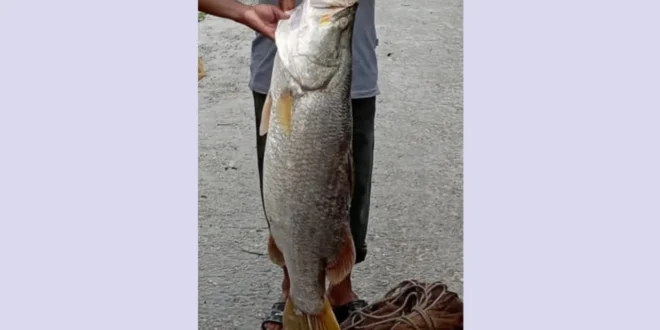 পটুয়াখালীর কলাপাড়ায় সোনাতলা নদীতে ঝাঁকি জালে ধরা পড়েছে ১৫কেজি ৬০০গ্রাম ওজনের বিশাল আকৃতির একটি কোরাল মাছ।