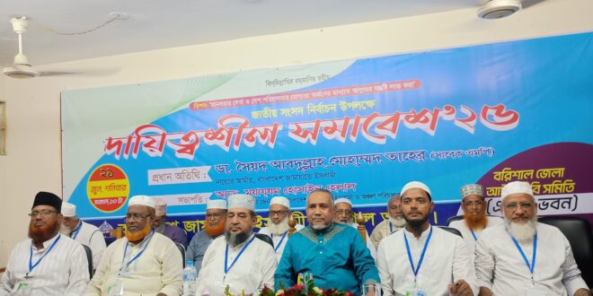 জাতীয় সংসদ নির্বাচন উপলক্ষে বরিশাল বিভাগের ২১আসনের দায়িত্বশীল সমাবেশে প্রধান অতিথির বক্তব্যে এসব কথা বলেন বাংলাদেশ জামায়াতে ইসলামীর নায়েবে আমীর, সাবেক সংসদ সদস্য ডা. সৈয়দ আবদুল্লাহ মোহাম্মদ তাহের।