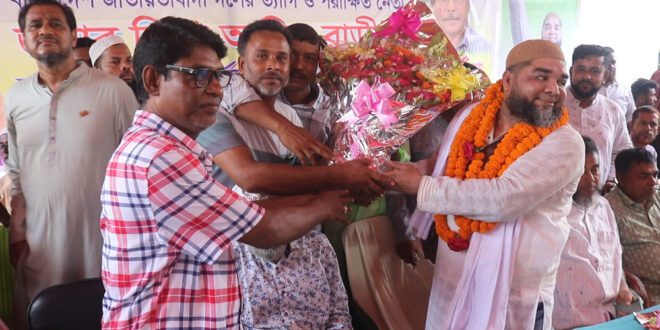 এসময় সংবর্ধনা অনুষ্ঠানে ফুলে ফুলে সিক্ত হলেন বিএনপি নেতা মোঃ জিয়া আমিন রাড়ী।