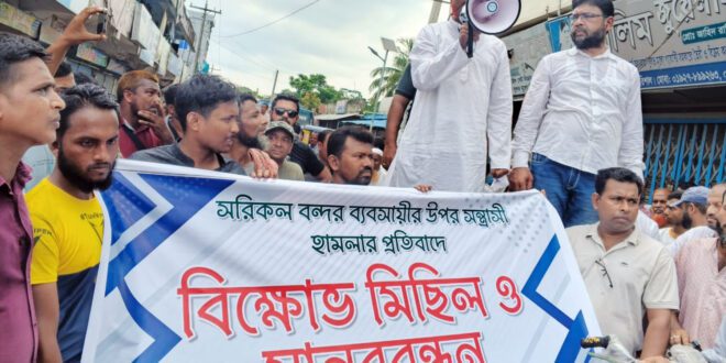 গৌরনদীতে বিএনপি নেতার ছেলের হামলায় দুই ব্যবসায়ী জখম, প্রতিবাদে বিক্ষোভ ও ধর্মঘট।