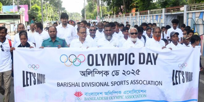 আন্তর্জাতিক অলিম্পিক কমিটির প্রতিষ্ঠা বার্ষিকী উপলক্ষে ‘লেটস্ মুভ’ প্রতিপাদ্যে বরিশাল ডিভিশনাল স্পোর্টস অ্যাসোসিয়েশনের ব্যবস্থাপনায় অলিম্পিক ডে ২০২৫ উদ্যাপিত হয়েছে।