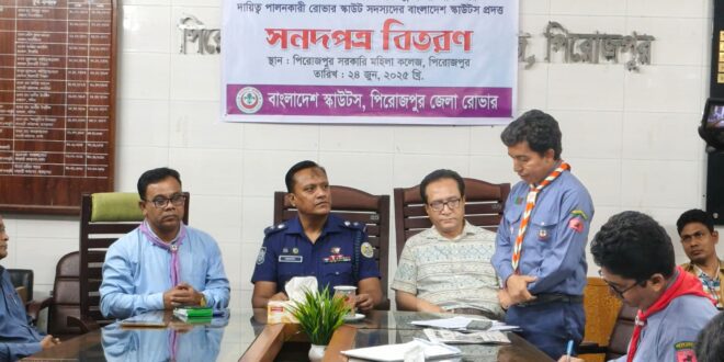 প্রধান অতিথির বক্তাব্যে পিরোজপুর জেলা পুলিশ সুপার খান মো: আবু নাসের বলেন, “জুলাই পরবর্তী সময়ে পুলিশ যখন ক্রান্তিকাল পার করছে তখন বাংলাদেশ স্কাউট একটা গুরুত্বপূর্ণ ভূমিকা পালন করেছে। শুধু পিরোজপুরই নয় পুরো বাংলাদেশ তারা ট্রাফিকের দায়িত্ব পালন করেছে।”
