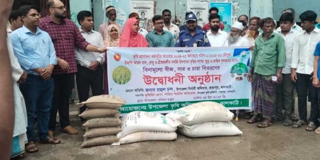 ঝালকাঠির রাজাপুরে ক্ষুদ্র ও প্রান্তিক কৃষকদের মাঝে বিনামূল্যে বীজ, সার ও চারা বিতরণ কার্যক্রম শুরু হয়েছে।