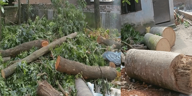 ঈদ-উল আযহায় শিক্ষা প্রতিষ্ঠান বন্ধ থাকার সুযোগে কলেজের ছাত্রাবাস নির্মাণের জন্য নির্ধারিত জায়গা থেকে বেশ কয়েকটি গাছ কেটে বিক্রি করা হয়।