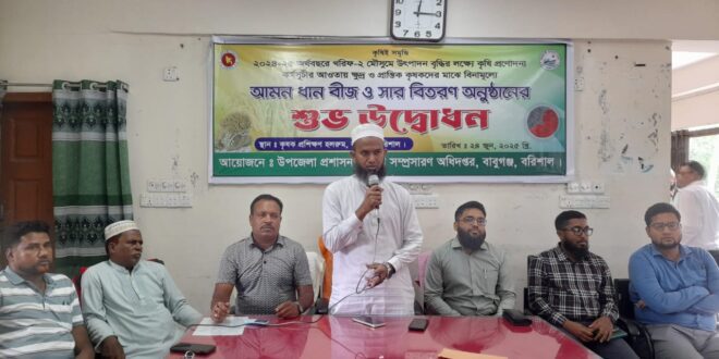 ২০২৪-২৫ অর্থ বছরে -২মৌসুমে উৎপাদন বৃদ্ধির লক্ষ্যে কৃষি প্রণোদনা কর্মসূচির আওতায় বরিশালের বাবুগঞ্জ উপজেলার ক্ষুদ্র ও প্রান্তিক কৃষকদের মাঝে বিনামূল্যে আমন ধানের বীজ ও সার বিতরণের উদ্বোধন করা হয়েছে।