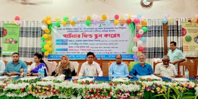 পার্টনার ফিল্ড স্কুল কংগ্রেস” অনুষ্ঠিত হয়েছে। আজ বুধবার দুপুর সাড়ে ১১ টায় উপজেলা পরিষদ সম্মেলন কক্ষে বামনা উপজেলা নির্বাহী অফিসার মোসা: নিকহাত আরা সভাপতিত্বে এতে প্রধান অতিথি হিসেবে বক্তব্য রাখেন, কৃষি সম্প্রসারন অধিদপ্তরের বরিশাল অঞ্চলের অতিরিক্ত পরিচালক ড.মোহাম্মদ নজরুল ইসলাম শিকদার, কৃষি সম্প্রসারন অধিদপ্তরের বরগুনা উপ-পরিচালক রধীন্দ্র নাথ বিশ্বাস, পার্টনার প্রকল্পের বরিশাল অঞ্চলের সিনিয়র মনিটরিং অফিসার মোসা: ফাহিমা হক ও বামনা উপজেলা কৃষি কর্মকর্তা মোসা: ফারজানা তাসমিন, বামনা উপজেলা বিএনপির আহবায়ক ইঞ্জিনিয়ার আবুল কালাম আজাদ রানা, বামনা প্রেসক্লাব সভাপতি আবু নাসের সিদ্দিক গোলাম কিবরিয়া ও সাধরন সম্পাদক মো: নিজাম উদ্দিন প্রমুখ উপস্থিত ছিলেন। এ সভায় প্রান্তিক কৃষকদলের নেতৃবৃন্দ উপস্থিত ছিলেন। সভায় বক্তব্য কৃষকদের উন্নয়নের জন্য দিক নির্দেশনা মূলক বক্তব্য দিয়েছেন।