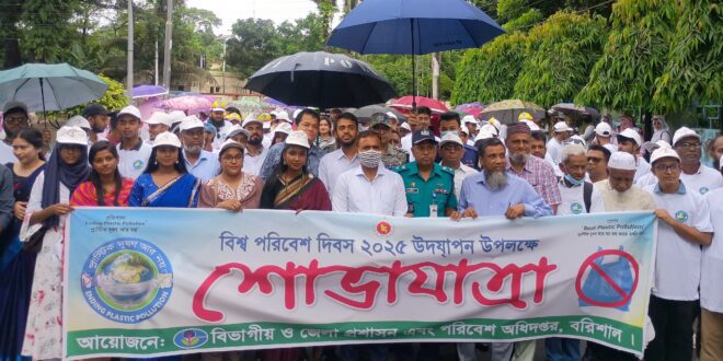 প্লাস্টিক দূষণ আর নয়-বন্ধ করার এখনি সময়’ এই প্রতিপাদ্য স্লোগান বিষয় নিয়ে আজ বরিশাল নগরীতে