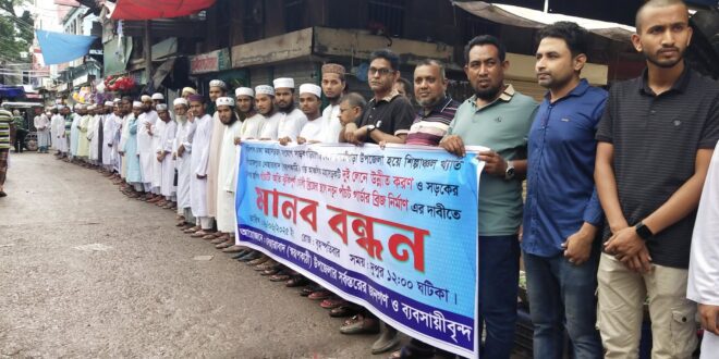 বৃহস্পতিবার (২৬ জুন) দুপুরে উপজেলার জগন্নাথকাঠি বন্দরের সড়কে উপজেলার সর্বস্তরের জনগণ ও ব্যবসায়ীদের আয়োজনে এই মানববন্ধনটি অনুষ্ঠিত হয়।