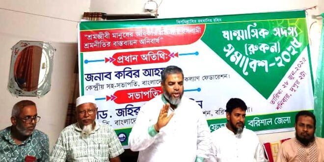 ক্যাপশন: গতকাল বরিশাল জেলা শ্রমিক কল্যাণ ফেডারেশনের সদস্য সমাবেশ অনুষ্ঠিত হয়।
