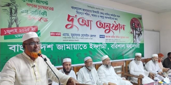 জুলাই গণঅভ্যুত্থানের প্রথম বার্ষিকী উপলক্ষে বরিশাল মহানগর জামায়াত আয়োজিত দোয়া অনুষ্ঠানে প্রধান অতিথির বক্তব্যে তিনি এ কথা বলেন।